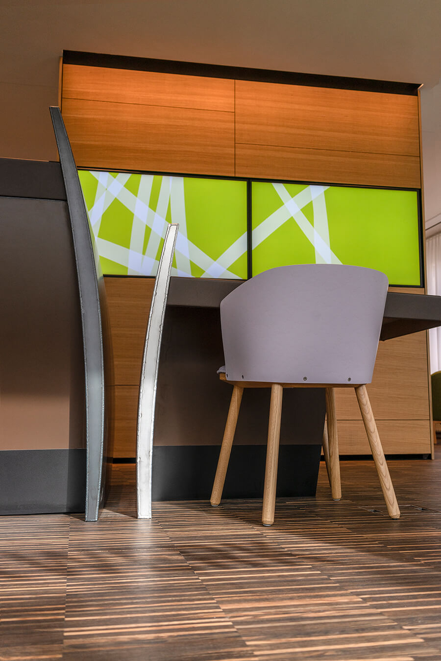 Die Genossenschaftsbank Thalwil ist, wie viele Banken auf der Suche nach einem neuen Erscheinungsbild (Bankwerker) wie auch von aktualisierten Vertriebskonzepten und Kundenkontakten. Wir haben Szenarien für Workshops entwickelt, welche zusammen mit engagierten Bewohnern von Kilchberg durchgeführt wurden. Die so generierten Erwartungen an die Bank in Kilchberg ist von uns in ein neues Bankkonzept umgesetzt worden. Der handwerkliche Umgang und Ausdruck der Materialität soll den Begriff «Bankwerker» erfahrbar machen. Der Bankmitarbeiter versteht sich als Concierge und die Bank kann von lokalen Vereinen für Anlässe gemietet werden.
